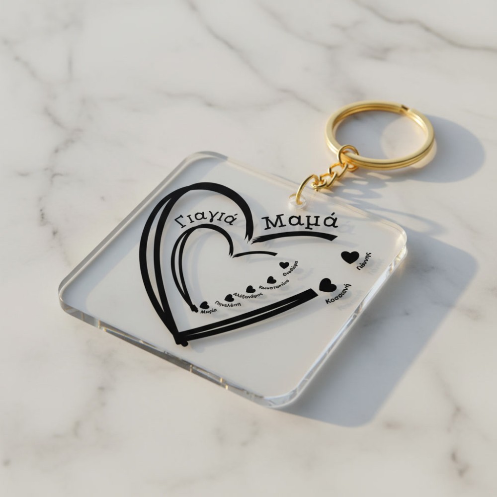 This unique keychain is custom-made with the names of children and grandchildren, forming a beautiful heart full of love.