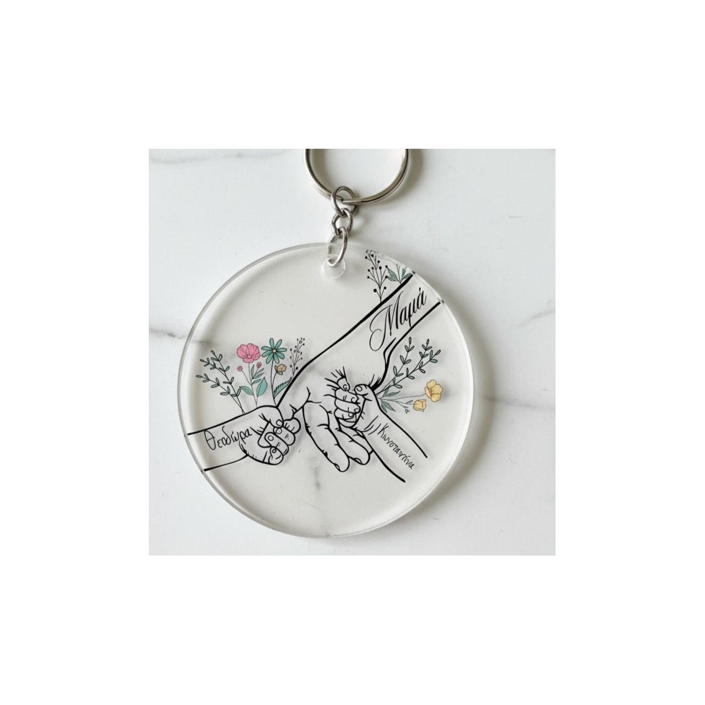 A unique personalized keychain for mom, featuring the names of her children.